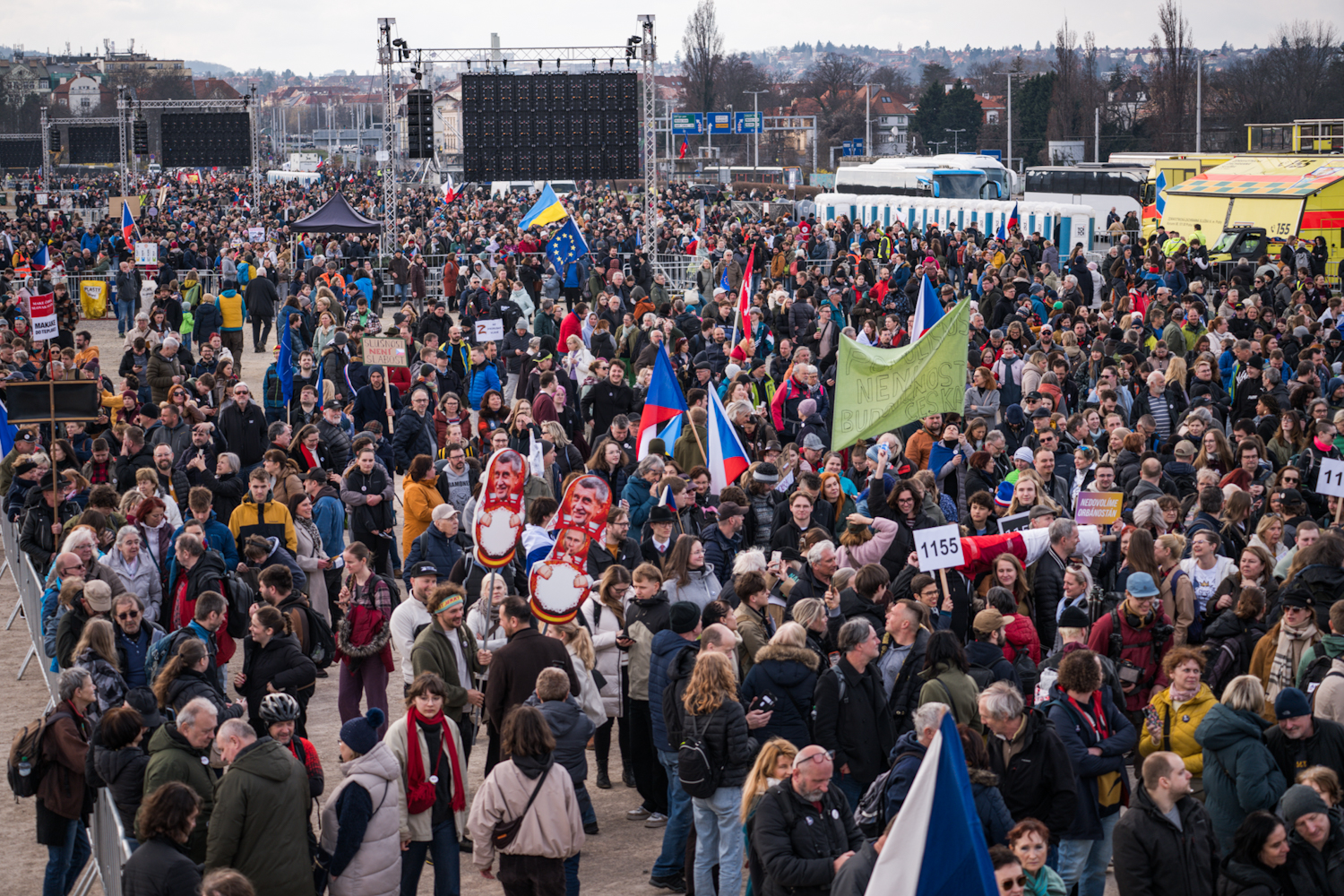 Lidé se scházejí na Letenské pláni na shromáždění Milionu chvilek pro demokracii. (21.3.2026)